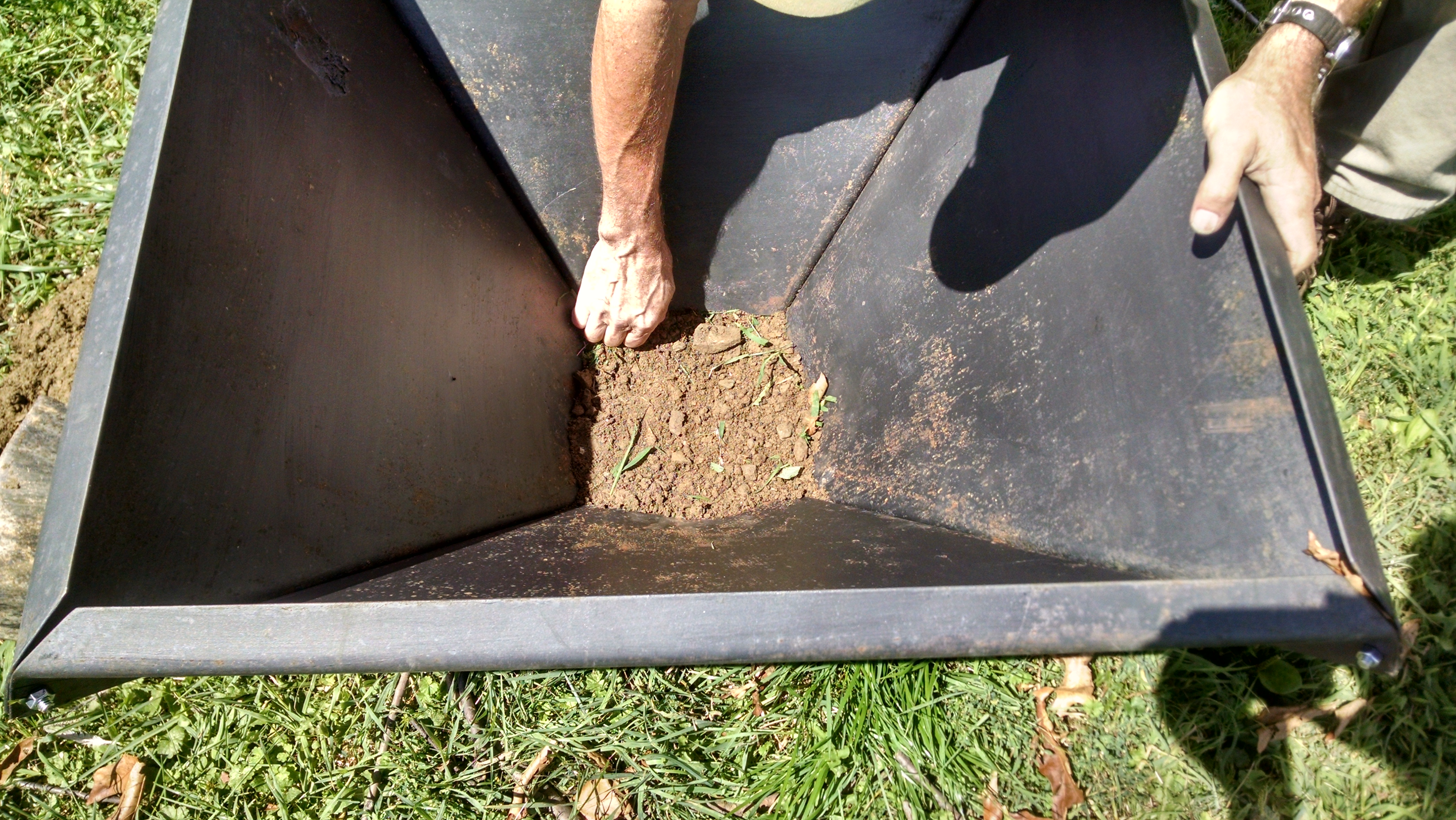 The Pennsylvania Pyramid Kiln is based on the design of an inverted pyramid. This allows a large opening to preheat and burn wood in an oxygen rich atmosphere, thereby keeping smoke to a minimum. As the wood is changed to charcoal, it falls to the bottom of the kiln where it cannot burn up due to lack of oxygen.
